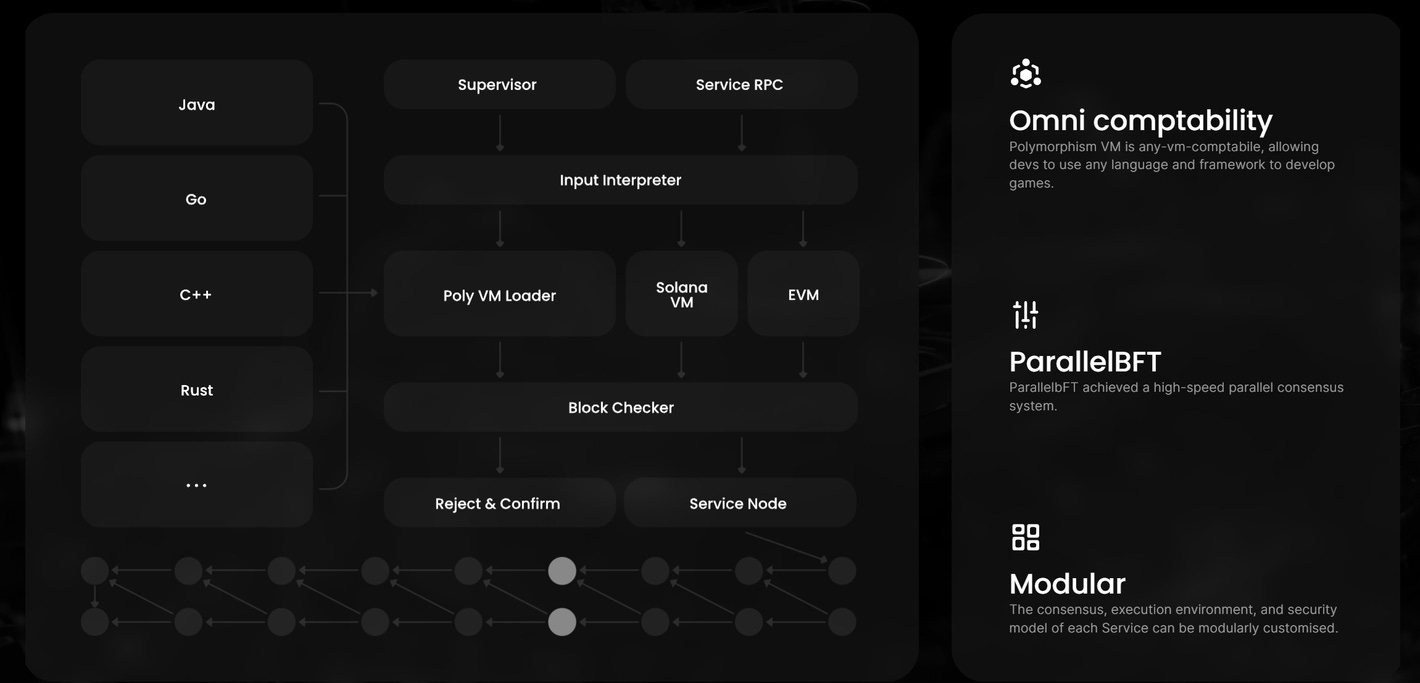 At the core of the layer lies the function of polymorphism, which forms the basis of their virtual machine (Polymorphism VM)